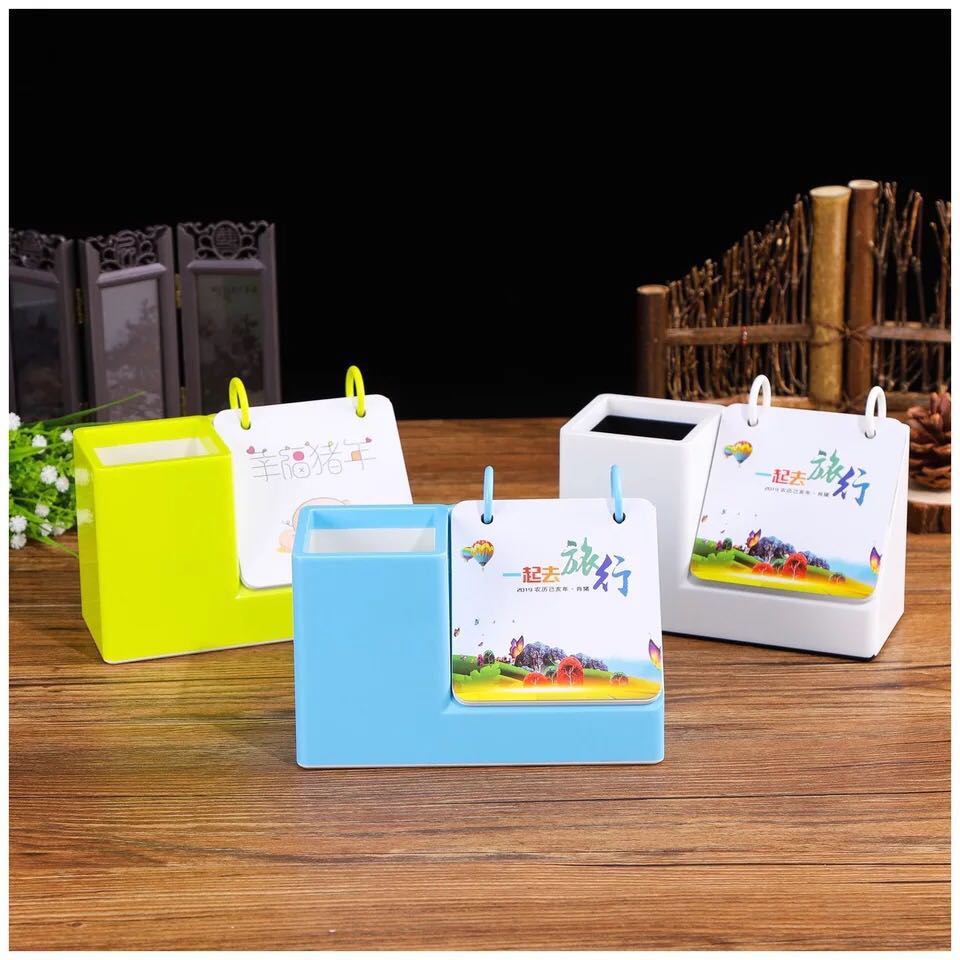 收纳台历新款塑胶台历 办公商务周历 创意塑胶笔筒台历 台历定制