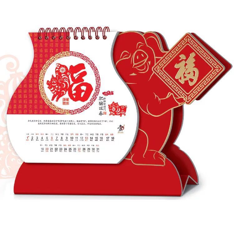 金猪送福字迎春喜庆红色双面印刷桌周月年日台历专版定制异形