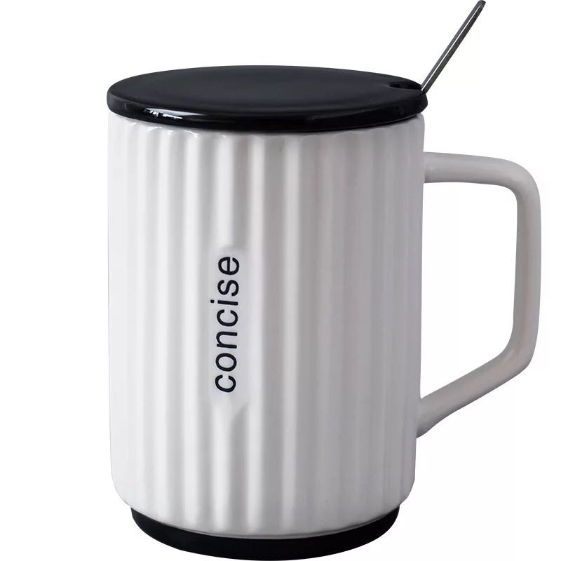 简约条纹陶瓷杯子 logo可定制