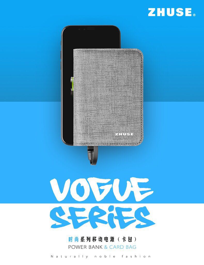 ZHUSE 新款自带移动电源钱包商务定制logo 7000毫安移动电源