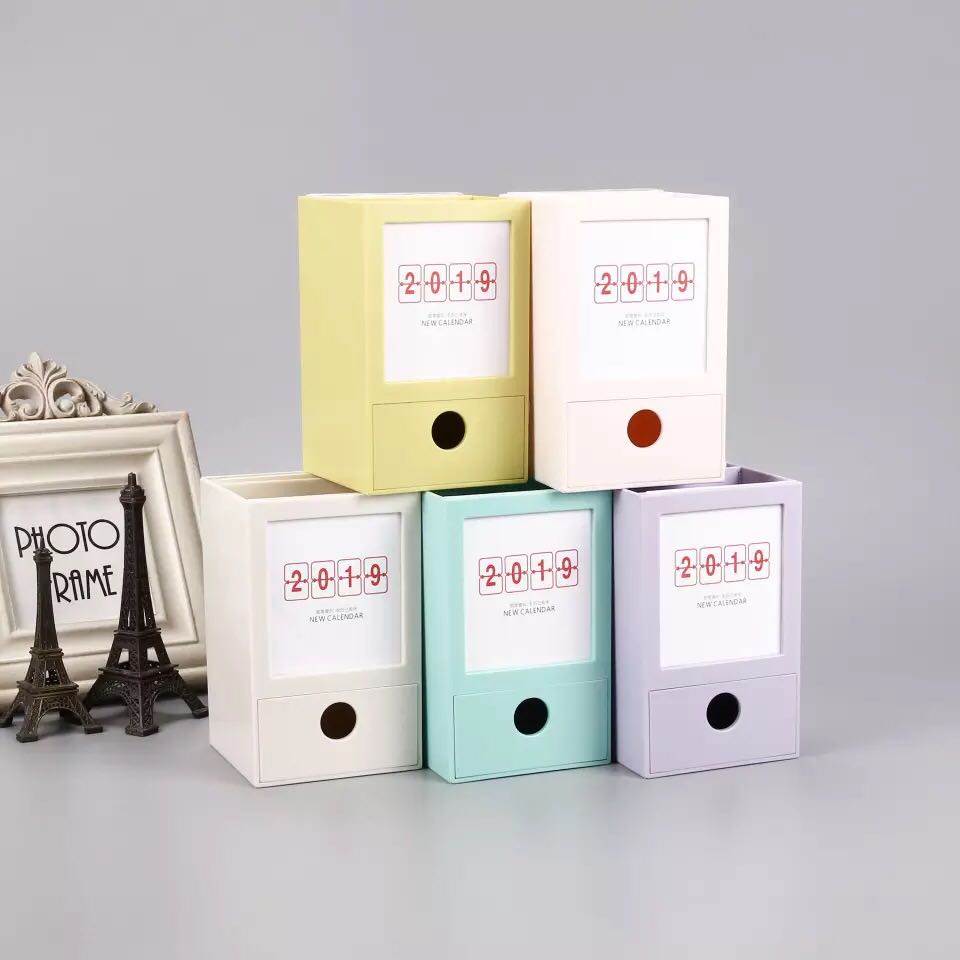 收纳台历新款塑胶台历 办公商务周历 创意塑胶笔筒台历 台历定制